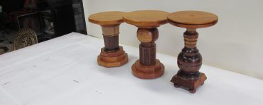 Alle meubels zijn handgemaakt waarbij verschillende materialen zijn gebruikt.